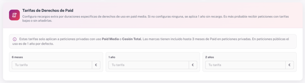 Puede generar rechazo a las marcas el hecho de subir y/o subir demasiado las tarifas de Paid. Te recomendamos que lo revises con calma y cariño.