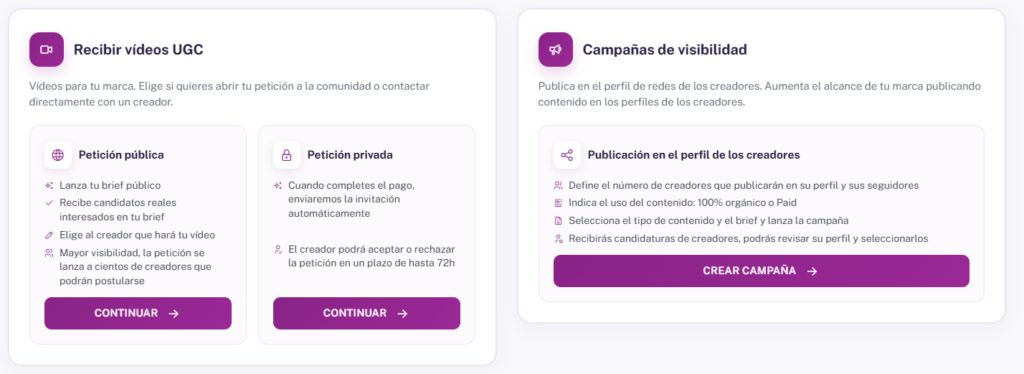 Hacer peticiones de vídeos UGC para recibir y usar como marca (redes sociales, Paid, web).