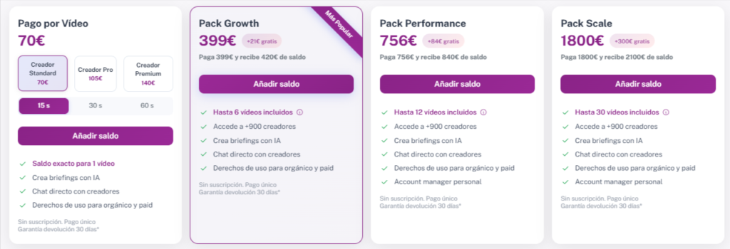 puedes empezar con un solo vídeo o escalar cuando quieras.