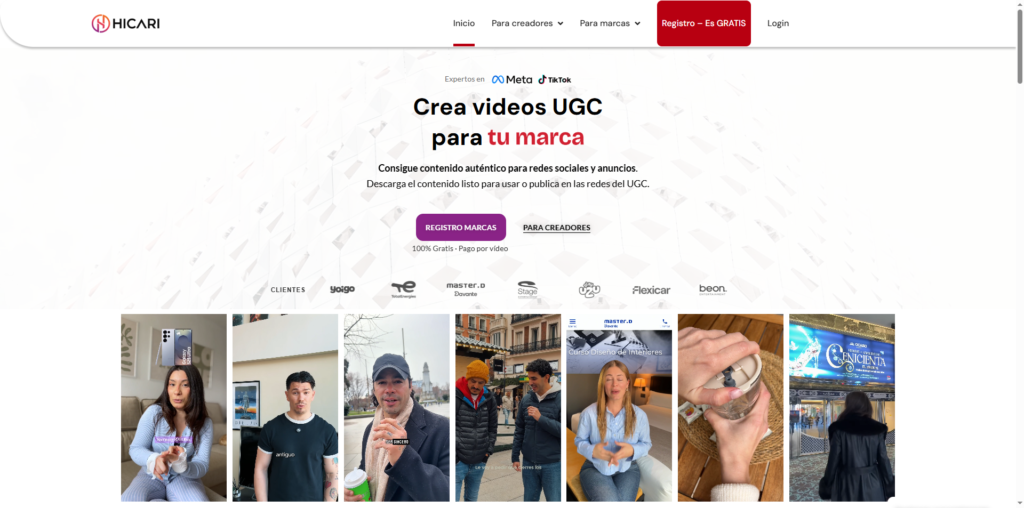 1. Soporte y Estrategia HICARI: sí, somos una plataforma pero también una agencia UGC que ofrecemos acompañamiento y/o gestión total. ¿Lo mejor? Es un equipo con años de experiencia en marketing tanto en agencias como en multinacionales, que sabe lo que hace.