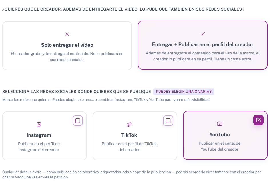 Peticiones de contenido UGC