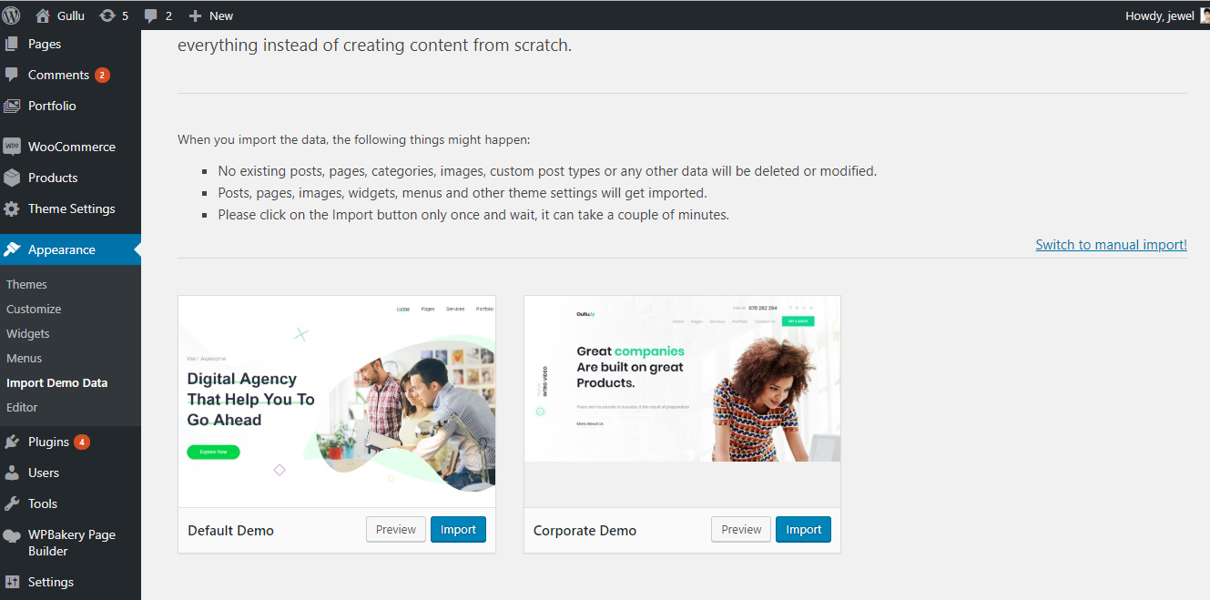Note: If the option data do not import then you have to import it manually. Navigate to ‘Theme Settings > Backup’. Then copy-paste the backup string here and click on the Import a Backup button. You will find the backup string in the options.txt file.